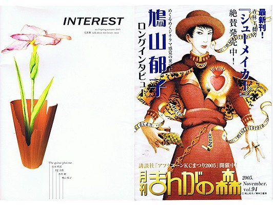 (左より)ミニコミ誌「INTEREST」no.3、小冊子「まんがの森」vol.94 05年11月号