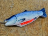 《光るイクラのシャケ》2009年 340mm×120mm LED, 羊毛フェルト