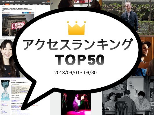 2013年9月のアクセス・ランキングは、8月31日より公開となった小林政広監督『日本の悲劇』クロスレビュー、9月24日に発表されたアメリカでのモンサント保護法撤廃のニュース、そして10月19日(土)より公開となる『マイク・ミルズのうつの話』記事が上位となりました。